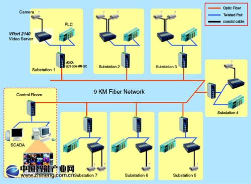 基隆港为台湾北部最重要的商业港口,周围共拥有七座变电所,而且每座变电所间相距九公里的距离。最近,其管理单位已将变电所控制系统升级为全新的 SCADA系统。为了确保七座变电所能稳定供应港口电力,KHLB使用PLC来控制数百个电力测量仪器,建置SCADA系统进行运作管理,并且通过 MOXA EDS-308工业以太网交换机将数据传送到中央控制房。